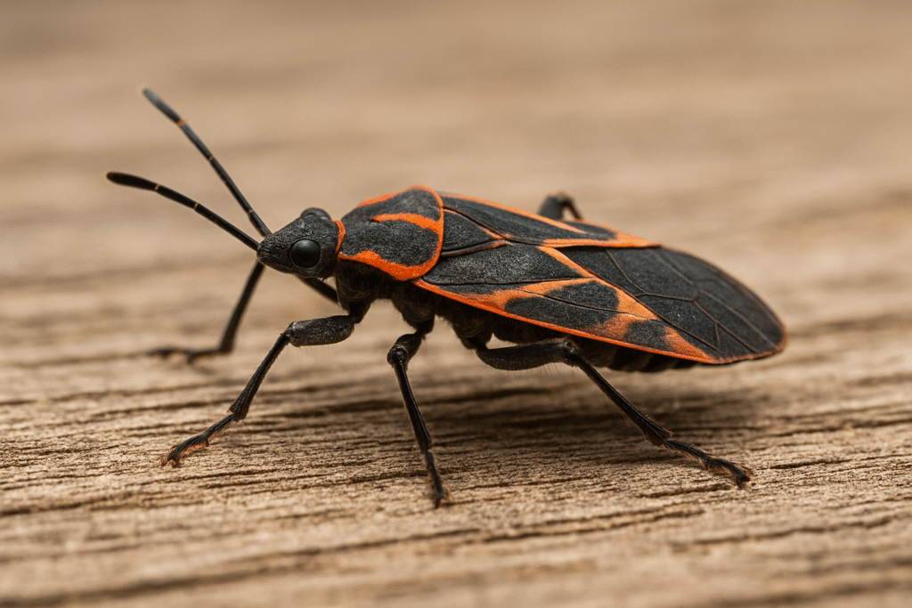 La chinche del arce, también conocida como chinche occidental del arce, es un insecto de color negro o marrón oscuro con marcas anaranjadas o rojizas en las alas. Aunque no es peligrosa para los humanos, puede convertirse en una plaga molesta cuando entra en las casas en busca de refugio.